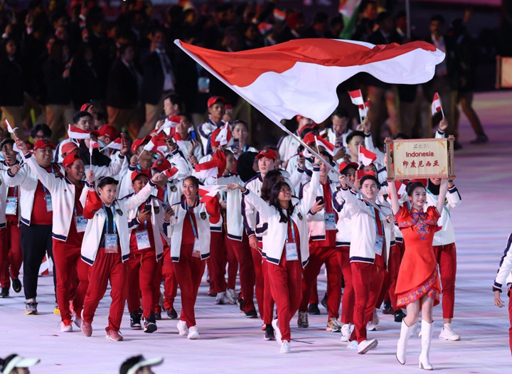 7月28日,印度尼西亞大學生體育代表團在開幕式上入場。新華社記者張麗蕓攝