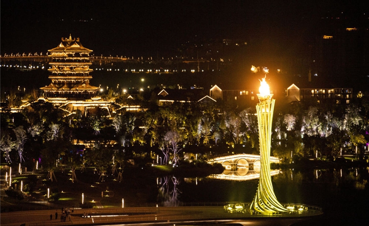 主火炬塔的火焰熊熊燃燒,照亮了全人類追求和平與發(fā)展的共同愿望,照亮了構(gòu)建人類命運共同體的共同夢想!