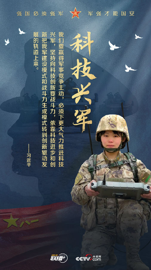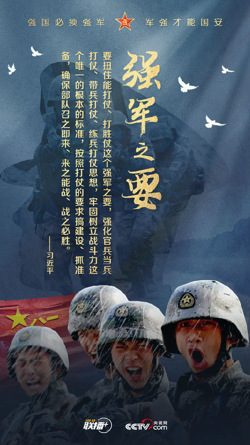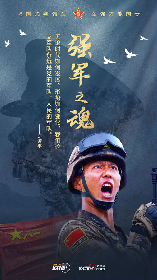 黨的十八大以來,習近平主席始終高度重視國防和軍隊建設,為全軍擘畫強軍興軍藍圖、指引奮進方向。值此中國人民解放軍建軍96周年之際,央視網《聯播+》欄目制作強軍海報,與您一起學習習主席的強軍思想。