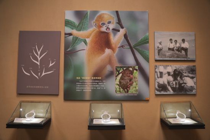 運城博物館展出的垣曲“世紀曙猿”化石。 人民網記者 王帆攝