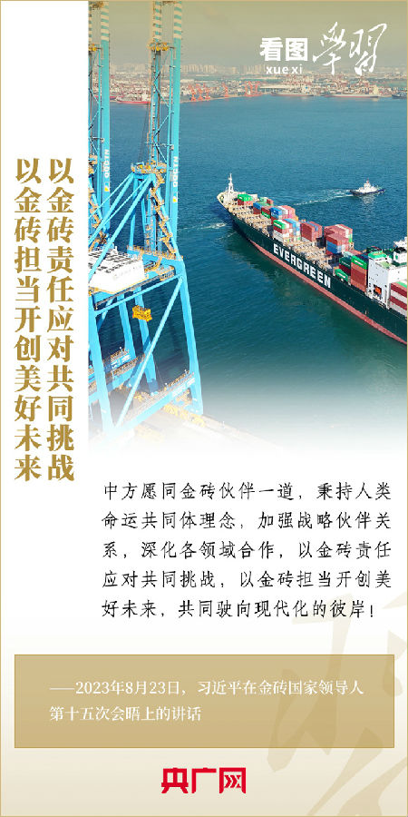 當(dāng)?shù)貢r(shí)間8月23日,習(xí)近平主席出席金磚國(guó)家領(lǐng)導(dǎo)人第十五次會(huì)晤并發(fā)表重要講話,強(qiáng)調(diào)金磚國(guó)家要秉持開(kāi)放包容、合作共贏的金磚精神,以金磚責(zé)任應(yīng)對(duì)共同挑戰(zhàn),以金磚擔(dān)當(dāng)開(kāi)創(chuàng)美好未來(lái)。一起來(lái)學(xué)習(xí)!