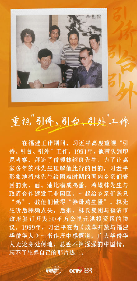 聯播+擔任福州市委書記期間創造性地提出了“以僑引僑、以僑引臺”等招商引資思路,訪問美國期間為僑胞送去月餅,在津巴布韋發表署名文章講述“非愛不可”媽媽團體的故事,在廣東汕頭同市民群眾交流肯定華僑貢獻......從地方到中央,習近平與“僑”的緣分頗為深長,他對僑情有深入了解,對僑界有深厚感情,與廣大僑胞留下了許多暖心故事。