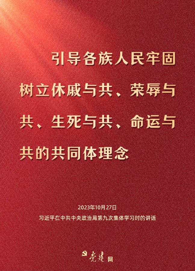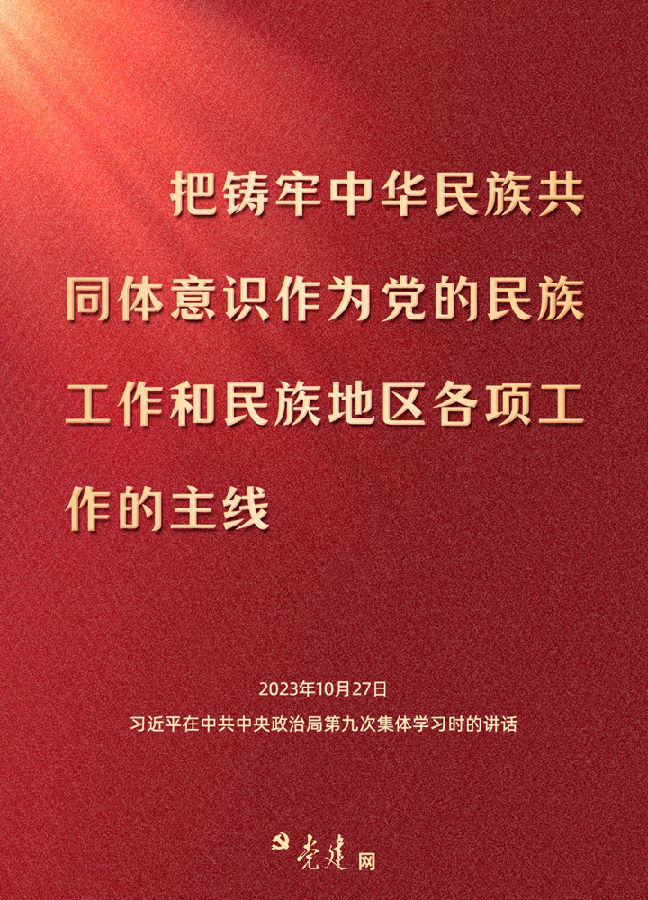 中共中央政治局10月27日下午就鑄牢中華民族共同體意識(shí)進(jìn)行第九次集體學(xué)習(xí),習(xí)近平總書記主持學(xué)習(xí)并發(fā)表重要講話。快來(lái)一圖學(xué)習(xí)總書記關(guān)于鑄牢中華民族共同體意識(shí)的精彩論述!