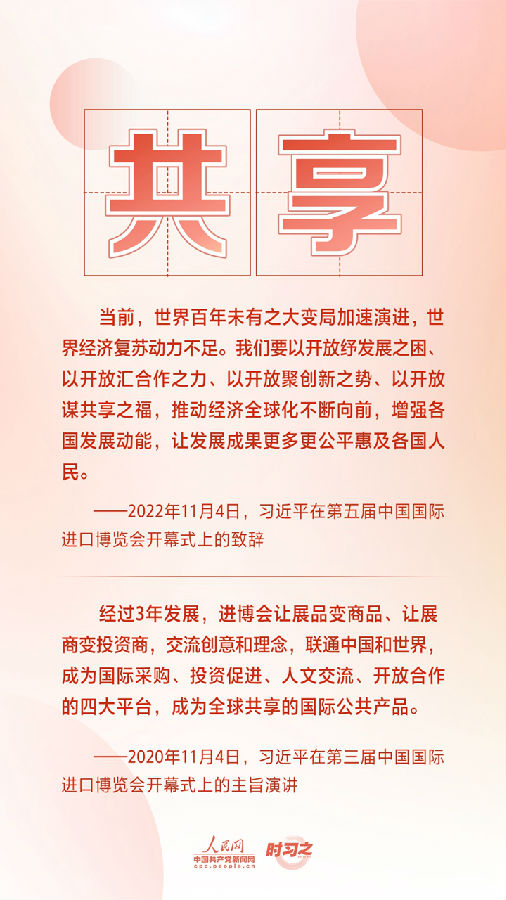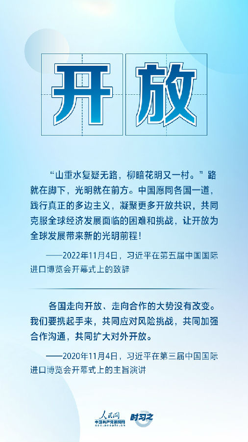 自2018年起,國家主席習近平連續5年在進博會開幕式上發表主旨演講、致辭,旗幟鮮明地闡述推動建設開放型世界經濟、支持經濟全球化的堅定決心。