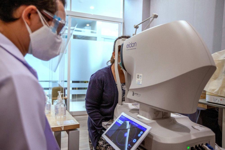 △2022年2月14日,在泰國曼谷詩里拉吉醫院,一名醫生操作5G自動驗光儀為患者檢查。2021年12月,5G智慧醫院項目在詩里拉吉醫院啟動。