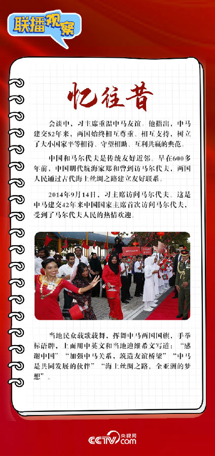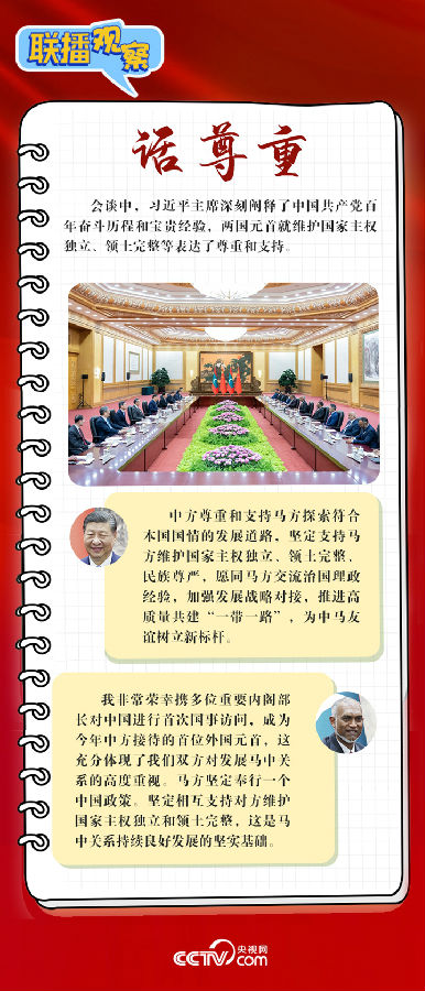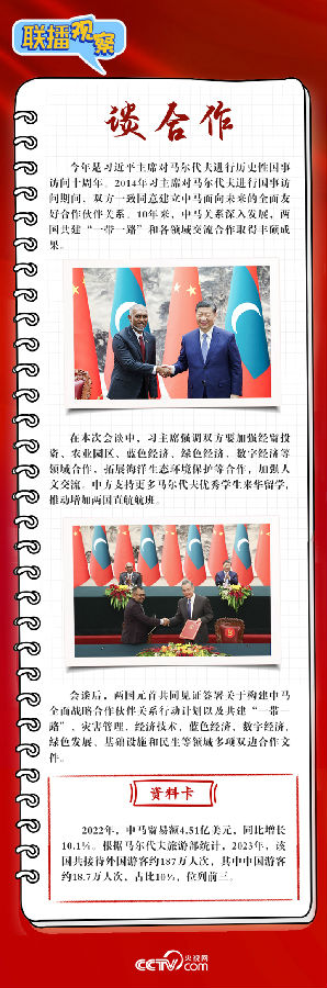 聯(lián)播+ 1月10日,習(xí)近平主席在人民大會堂同來華進(jìn)行國事訪問的馬爾代夫總統(tǒng)穆伊茲舉行會談。兩國元首宣布,將中馬關(guān)系提升為全面戰(zhàn)略合作伙伴關(guān)系。央視網(wǎng)《聯(lián)播觀察》帶您讀懂新年首位外國元首訪華背后的深意。