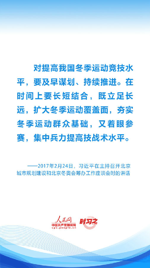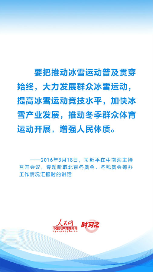 推動我國冰雪運動跨越式發(fā)展是實現(xiàn)第二個百年奮斗目標(biāo)的重要組成部分。習(xí)近平總書記多次在不同場合表達(dá)對冰雪運動的重視。在他的親自謀劃、持續(xù)推動下,“三億人參與冰雪運動”愿景成為現(xiàn)實,中國冰雪運動跨過山海關(guān),走進(jìn)全國各地。
