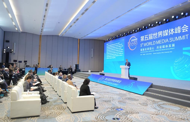 2023年12月4日,以“提振全球信心 共促媒體發展”為主題的第五屆世界媒體峰會在廣州南沙舉行平行分論壇活動,嘉賓在分論壇上發言。新華社記者 盧漢欣 攝