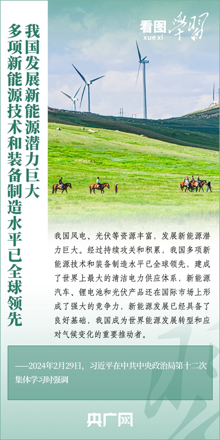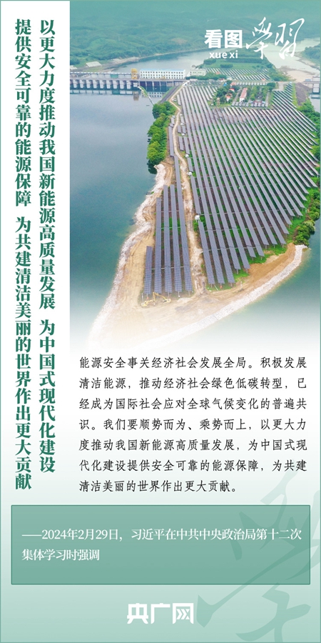 能源安全事關經濟社會發展全局。2月29日,習近平總書記在中共中央政治局第十二次集體學習時強調,我們要順勢而為、乘勢而上,以更大力度推動我國新能源高質量發展,為中國式現代化建設提供安全可靠的能源保障,為共建清潔美麗的世界作出更大貢獻。一起來學習!