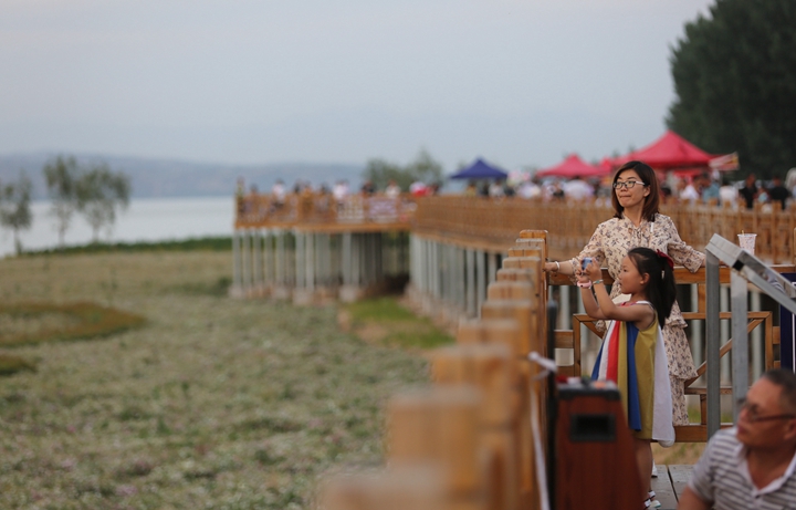 △ 位于三門峽境內(nèi)的黃河生態(tài)廊道美景如畫,吸引著市民前來觀光旅游、納涼避暑。