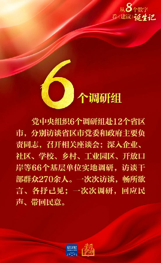 今天,新華社播發通訊《為基本實現社會主義現代化奠定更加堅實的基礎——<中共中央關于制定國民經濟和社會發展第十五個五年規劃的建議>誕生記》。通過一組數字,一起來看這份綱領性文件是如何誕生的。