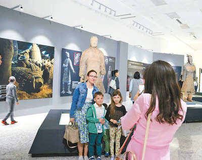 市民達(dá)烏連告訴記者,上中學(xué)時(shí),他從課本上知道了中國的兵馬俑,但從未有機(jī)會(huì)實(shí)地欣賞。此次兵馬俑在阿斯塔納展覽,圓了他多年夢想。他特地帶了孩子來,一起感受歷史悠久的中國文化?!胺浅8兄x中國朋友讓我們在家門口就能看到如此棒的展覽!”他還有一個(gè)“小目標(biāo)”:要帶著孩子去中國西安參觀秦始皇兵馬俑博物館,“實(shí)地感受那種震撼的場面”。