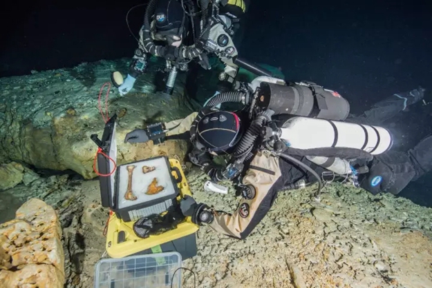▲潛水員正在提取奈阿的骨骼