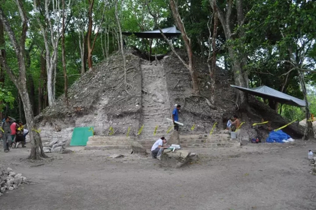 伯利茲素那多尼基遺址位于危地馬拉邊界的伯利茲河上游河谷涵蓋了伯利茲這個國家最大的考古遺址群。2015年-2016年先后發(fā)掘的一座位于主要衛(wèi)城的小神殿以及兩座寺廟金字塔和調查發(fā)掘,調查發(fā)現3號和4號象形文字碑版、A9-2墓葬,建筑中央樓梯的第一階下方發(fā)現的兩個藏物箱或陪葬箱,以及在建筑底部下方所發(fā)現的未雕刻石碑。
