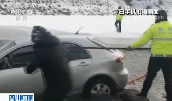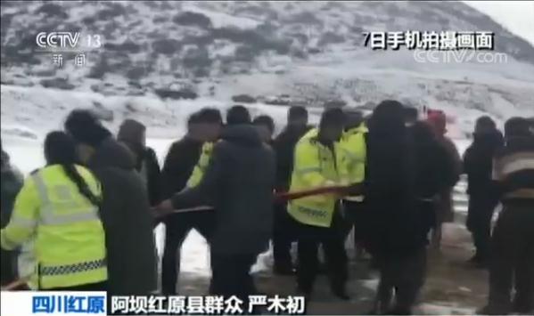 阿壩紅原縣群眾嚴木初說,我一不小心踩了一個急剎以后就溜到坎底下來了,這河道里全是冰塊沒有辦法停,車就一直溜到河里去了,正準備報警的時候,交警過來了,他們幫忙,后面陸陸續續老百姓來了以后,慢慢就幫我拖到岸上了。