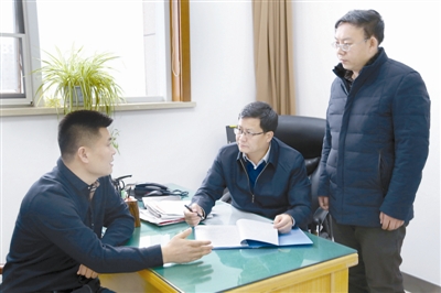 圖為周躍武(中)與室里同志在討論研究案件。高小軍 攝