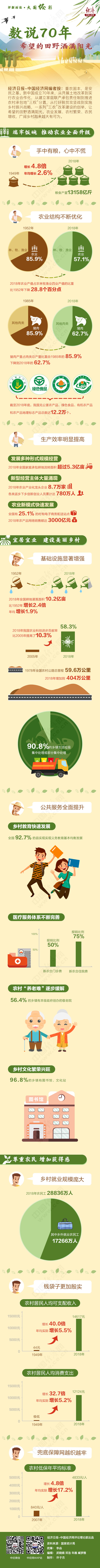 經濟日報-中國經濟網編者按:重農固本,是安民之基。新中國成立70年來,從開展土地改革到實行農業合作化,從建立家庭聯產承包責任制到推進農村承包地“三權”分置,從打好脫貧攻堅戰到實施鄉村振興戰略,一系列“三農”改革建設的創舉,讓希望的田野灑滿陽光。農業發展、農村繁榮、農民增收,廣闊鄉村越來越大有可為。