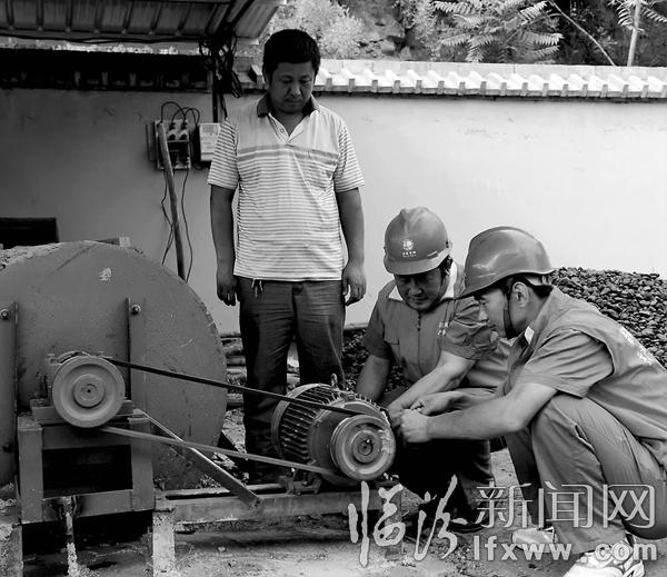 臨汾新聞網訊 近日,古縣供電公司永樂供電所黨員服務隊結合當地農時實際,到農村走訪青翹加工戶,為農戶檢查供電設備,發現缺陷立即處理,確保用戶用電無憂。據悉,每年“三伏”時節,當地村民以靠山吃山的優越條件,從山上采摘青翹進行收購烘干深加工制成藥材,增加收入。圖為黨員服務隊在趙店村農戶家檢查烘干電動機接線柱。張天杰攝