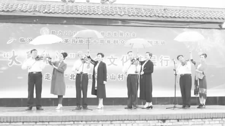臨汾新聞網訊 連綿俊秀的太岳山,映襯著一方沃土的輝煌。9月14日,助力2018山西省旅發大會、臨汾市慶祝改革開放40周年群眾文化系列活動之“美麗臨汾”群眾文化基層行走進風景如畫、物華天寶的古縣北平鎮黨家山村。在這個平均海拔1500米的臨汾“最高村”,演員們堅持冒雨演出,為聞訊而來的村民們奉上了精彩的文藝大餐。