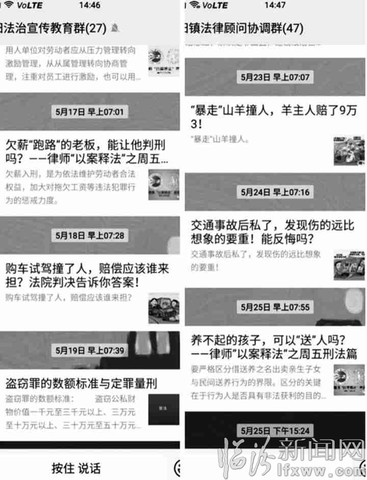 建立了村干部和安置幫教人員微信群,每天為群眾推送常用法律法規(guī)、以案釋法案例、職業(yè)技能培訓(xùn)信息、就業(yè)信息,解答法律咨詢(xún)等。今年上半年,累計(jì)推送法律知識(shí)等400余條,累計(jì)解答咨詢(xún)20余次,為安置幫教人員推送就業(yè)信息、職業(yè)技能培訓(xùn)信息50余次。