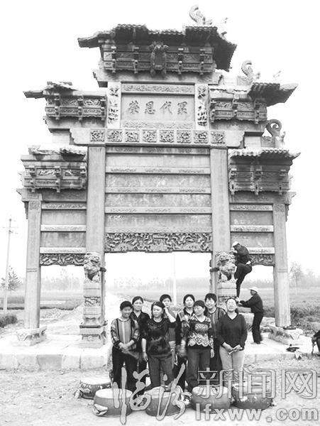 陳保子描述,以前石牌坊下邊是出村的路,但不是現在直行的東西路,它坐南朝北,聽老一輩講這是臣子們每天面向北方朝拜,享受浩蕩皇恩。完整的石牌坊蔚為壯觀,栩栩如生的8個石獅4個朝東,4個面西,牌坊上的鏤空雕刻工藝奇特,人物有祥和的,有威武的,整體是一幅宏大的石刻作品,局部看也是一幅有深刻含意的故事。可惜的是,8個石獅被盜走了4個,堅固的部分構件也沒能逃脫盜賊的光顧,只因牌坊結構嚴謹,不能將石雕完整地拿走,卻將古人留給后人的文化遺產破壞,石柱上至今還留有固定石獅的痕跡。