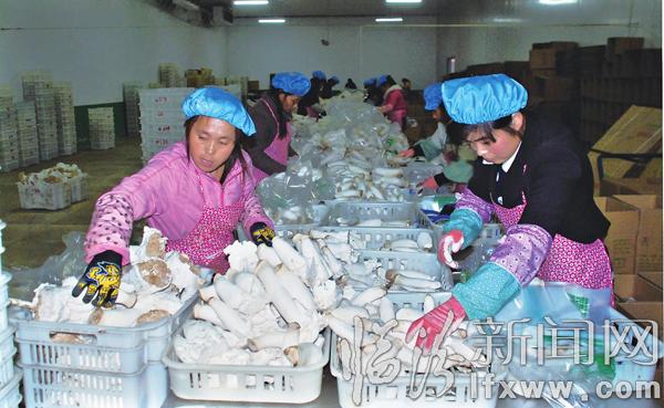 臨汾新聞網訊 洪洞縣萬安鎮西梁村舜晨農業科技發展有限公司利用廠房種植食用菌,在節約土地的同時,提高了食用菌產量。目前,該公司可日產菌包近3萬個、杏鮑菇8噸,產品銷往太原、西安、咸陽、天水、蘭州、西寧等10余個城市,市場前景良好。圖為工人們在生產線上加緊包裝杏鮑菇。 記者 李自強 攝