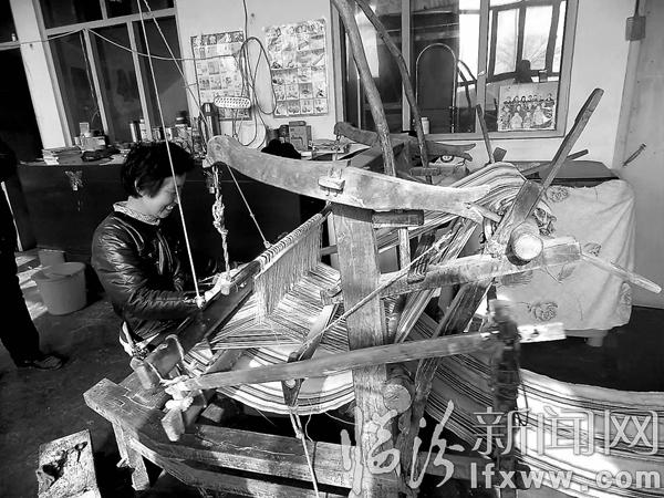 臨汾新聞網訊 今年56歲的賈鳳榮,是洪洞縣劉家垣鎮柴家垣村人,16年來一直利用農閑時間織棉花土布。因為當地娶媳婦、嫁姑娘有土布做嫁妝的習俗,加上棉布有天然護膚作用,所以她織出的棉布深受顧客歡迎,在當地市場供不應求。圖為賈鳳榮在家中織布的場景。