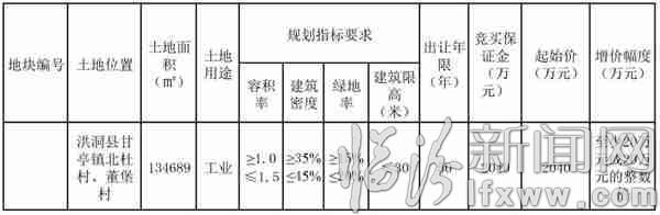 掛牌地點:洪洞縣國土資源交易事務(wù)所。