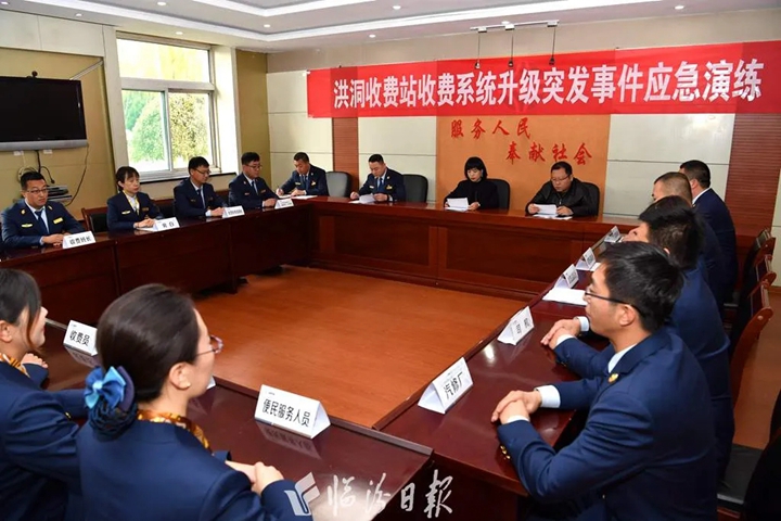 演練以收費系統升級中洪洞收費站ETC車道、人工車道出現系統故障,同時混合車道一輛客車發生故障,僅剩一車道能夠通行,車道出現擁堵現象,為此臨汾北高速值班領導立即啟動《收費突發事件應急預案》為場景。經過快速有序處理,車道升級成功、恢復正常的收費工作秩序,車輛有序通行,且沒有發生投訴事件 。