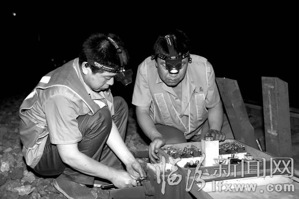 臨汾新聞網(wǎng)訊 6月13日,侯馬電務(wù)段職工在夜晚“天窗”點內(nèi)對臨汾北站的道岔設(shè)備進(jìn)行檢修。該段在安全大檢查活動中,以問題為導(dǎo)向,聚焦現(xiàn)場問題隱患,強(qiáng)化安全風(fēng)險過程控制,利用“天窗”修時間,對管內(nèi)信號設(shè)備進(jìn)行大檢查大整治,提高設(shè)備整體質(zhì)量水平。