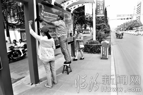 臨汾新聞網訊 7月8日,侯馬市組織該市文明單位志愿者隊伍,走上街頭,清掃、擦洗主要路段公交站牌,向市民宣傳倡導文明、和諧的行為準則,為創建全國文明城市增光添彩。張留高 攝