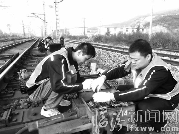 臨汾新聞網訊 為確保冬季信號設備運用狀態良好,連日來,侯馬電務段提早動手,對防寒過冬設備檢查整治,排除安全隱患。圖為該段位員工在侯月線認真檢查道岔。 白鵬 攝