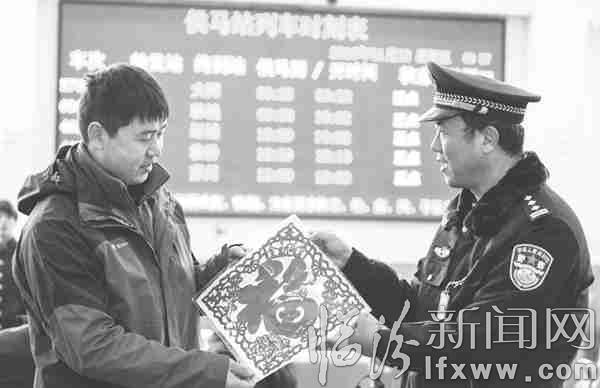 臨汾新聞網訊 春運啟幕,在侯馬火車站內,鐵路派出所民警幫助乘車的旅客取票,并送上新春的祝福。記者 張蘊強 攝