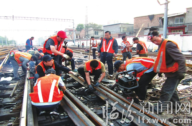 臨汾新聞網(wǎng)訊 近日,太原鐵路局在侯月線及侯馬站、侯馬北站組織開展了由工務(wù)、電務(wù)、供電等多部門參加的集中修施工大會戰(zhàn),全力整治提升鐵路設(shè)備運用質(zhì)量。圖為侯馬電務(wù)段侯馬車間干部職工正在侯馬站內(nèi)進行復(fù)式交分道岔整治作業(yè)。