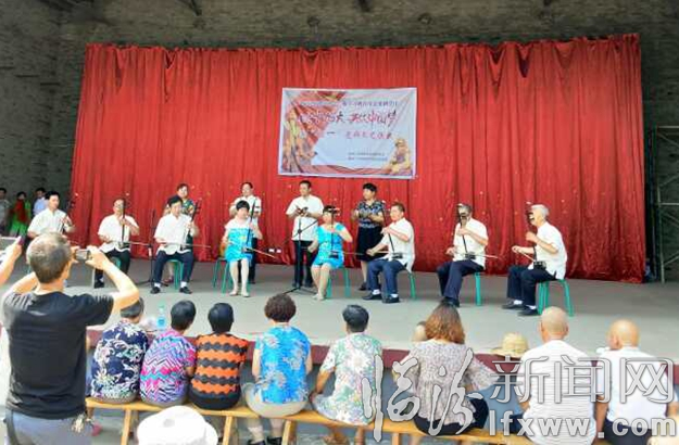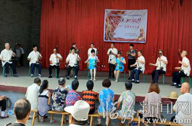 臨汾新聞網訊 七一前夕(6月30日午),中華藝術廳二胡成年班學員和新田藝術團30余名文藝愛好者,自發免費送戲下鄉,為侯馬市最大村莊之一的大南莊村黨支部,村民表演了二胡獨奏,齊奏,小品,獨唱,歌舞等節目。絲弦和鳴,載歌載舞紀念偉大的共產黨成立96周年,為農村廣大黨員,農民奉獻了一道豐富多彩的文化大餐。(袁世俊)