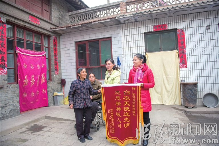 半個多月來,侯馬市五官科醫(yī)院組織醫(yī)護(hù)人員與志愿者多次往返侯馬、曲沃兩地,上門為這位困難老人問診,接送老人檢查,并成功實(shí)施了白內(nèi)障手術(shù)。除享受國家政策外,他們還免去了老人其他一切費(fèi)用,讓老人感激萬分。兩天前,老人特地制做了一面錦旗贈送給該院醫(yī)護(hù)人員:“白衣天使送光明,志愿精神暖人間”。