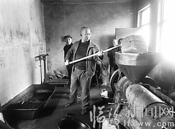 臨汾新聞網訊 近日,霍州市大張鎮賈村村民劉振海正在壓榨油葵。近年來,大張鎮積極引導農民調整種植結構,拓寬增收渠道,在穩定傳統農業的基礎上,引進油葵、西瓜、大蔥等多種特色農業產品,促進了群眾增收。 記者 范韶華 攝