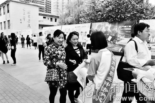 臨汾新聞網(wǎng)訊 眼下進(jìn)入了招生熱季,霍州職業(yè)中專學(xué)校制作了十四塊大型展板,通過宣傳在京津地區(qū)及太原的優(yōu)秀就業(yè)學(xué)生的事跡,使人們對職業(yè)院校學(xué)習(xí)就業(yè)工作有了一個深入的認(rèn)識。圖為學(xué)生志愿者向?qū)W生家長介紹就業(yè)方向。 (霍職)