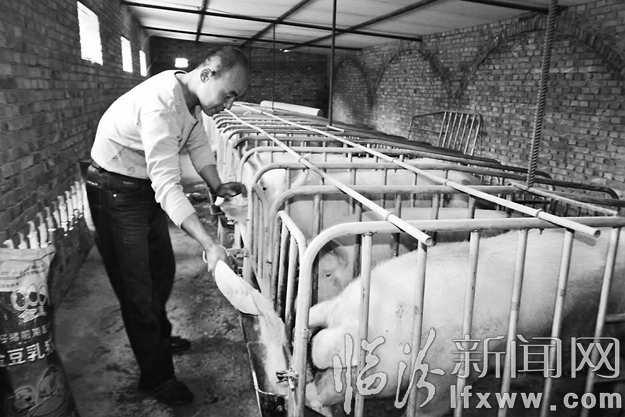 臨汾新聞網訊 近年來,霍州市以標準化生產為主線,以科技為支撐,強化市、鄉、村三級防疫服務體系建設,走“龍頭+合作社+基地”的路子,進一步增強了畜禽綜合生產能力,保障畜禽產品質量安全,為率先實現畜牧業現代化奠定了堅實基礎。圖為該市融洽養豬專業合作社社員任清峰正在給豬添料。