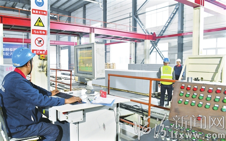 臨汾新聞網訊 山西建筑產業現代化綠色建材(霍州)園區項目總投資5.53億元,項目的實施和運營實現了工業固體廢棄物從末端治理到源頭控制質的轉變,對生態保護和產品創新具有重要意義。圖為工人們正在加工粉煤灰磚。