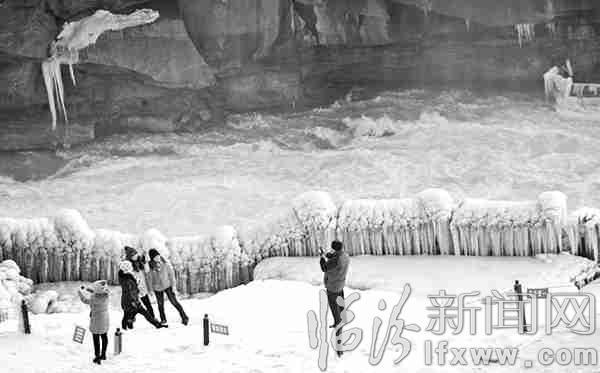 臨汾新聞網訊 1月10日“三九”第二天,全年最冷的日子。而位于吉縣的壺口景區卻呈現出“暖客”景象,游客在觀賞寒冬的彩虹美景時拍照留影。 記者 王隰斌 攝