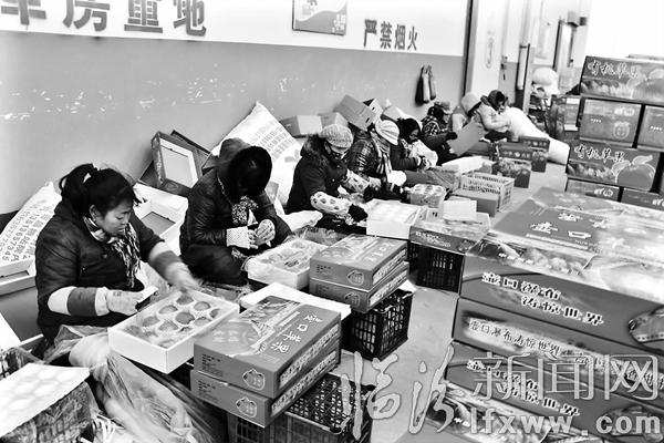 臨汾新聞網訊 近日,吉縣聚寶壺果業公司工作人員將氣調庫里的蘋果貼標、裝箱,銷往南方。該公司有蘋果氣調冷藏庫16個,年貯存蘋果8000噸,服務農戶1000余戶,銷售旺季日均用工達100余人,帶動了一方農民增收。