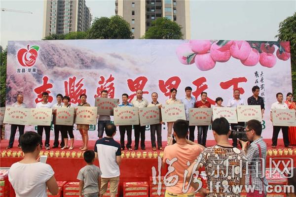 那么好吃的蘋果,在哪里買得到?菜市?果攤?作為蘋果中的名牌,當(dāng)然不可避免的會(huì)被假冒偽劣產(chǎn)品模仿。為了讓市民朋友吃到真正綠色健康吉縣蘋果,由吉縣蘋果產(chǎn)業(yè)發(fā)展協(xié)會(huì)會(huì)長楊朝輝、副會(huì)長丁振榮、秘書長葛明森以及玉林廣播電視報(bào)社黃冠華社長為17家玉林市本地經(jīng)銷商頒發(fā)“山西吉縣壺口蘋果指定經(jīng)銷”授權(quán)牌匾。廣大玉林市民朋友可以在宏進(jìn)市場(chǎng)指定授權(quán)經(jīng)銷門店購買到正宗吉縣壺口蘋果。