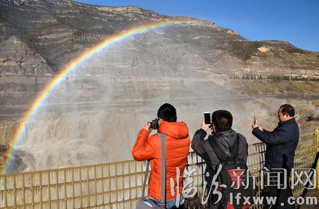 臨汾新聞網訊 3月2日,眾多游客在吉縣黃河壺口瀑布欣賞“彩橋通天”美景。當日,受天氣回暖和上游融冰開河速度加快影響,吉縣黃河壺口瀑布水量大增,春潮涌動,浪花飛濺,水霧騰空,形成“彩橋通天”壯美景觀,吸引了眾多游客。