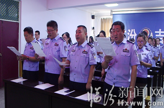 臨汾新聞網(wǎng)訊 7月4日上午,我局組織全體民警重溫入警誓詞。縣局黨委班子成員和全體工作人員參加了宣誓活動。