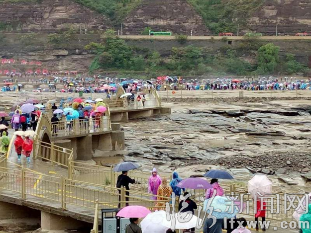 臨汾新聞網訊 10月3日國慶小長假第三天,陰雨綿綿,但游客熱情不減,山西臨汾吉縣壺口瀑布風景區迎來小高峰。
