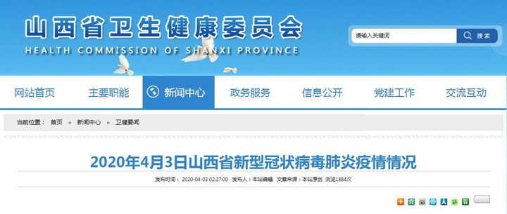 2020年4月2日0-24時,山西省無新增境外輸入確診病例,累計報告境外輸入確診病例4例。無新增境外輸入疑似病例,現有境外輸入疑似病例0例。