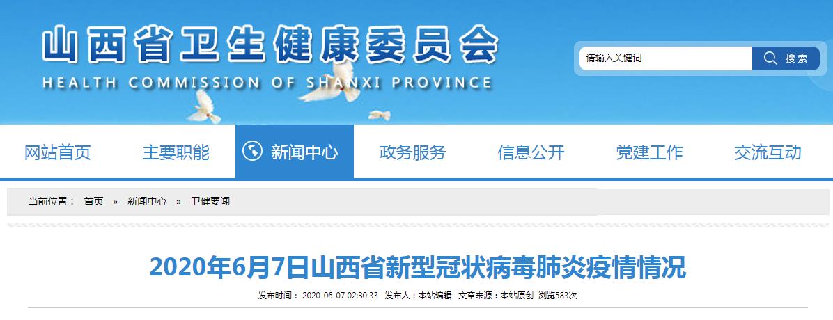 2020年6月6日0-24時,山西省無新增境外輸入確診病例。累計報告境外輸入性確診病例64例,治愈出院64例。現有疑似病例0例。