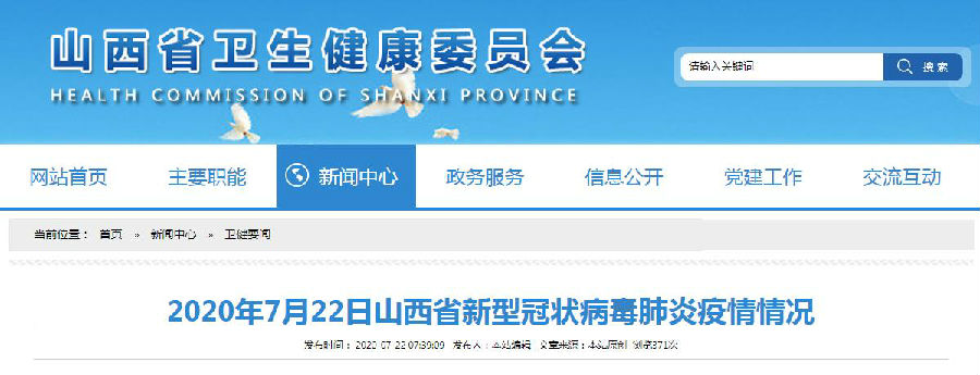 2020年7月21日0-24時(shí),山西省本地?zé)o新增新冠肺炎確診病例。累計(jì)報(bào)告確診病例134例,治愈出院134例?,F(xiàn)有疑似病例0例。