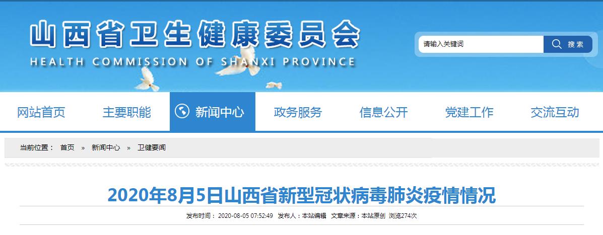 2020年8月4日0-24時,山西省本地無新增新冠肺炎確診病例。累計報告確診病例134例,治愈出院134例。現有疑似病例0例。